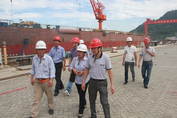 頒獎儀式結束后,市總工會三位來賓與公司相關人員一行,在項目經理林旋的帶領下,登上停靠在新址碼頭的84米半潛式自航居住平臺(MW610-2#船)參觀。