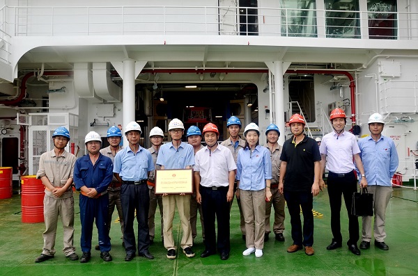 授牌儀式在105米飽和潛水支持船主甲板上舉行。省直團工委書記陳國欽親自授牌,MW632-1#項目經理余平代表項目組全體成員領取獎牌。陳國欽書記一行還出席座談會,對馬尾造船公司團建工作進行專項督導。馬尾造船公司黨委書記黃以豪、福船集團團委書記黃穎陪同參會。會上,陳國欽書記指出,馬尾造船團委應充分結合“一學一做”,開展全團學習教育;要認真按照團的章程,加強團組織的基礎建設;要繼承優良傳統,在工作中敢于求新求變。黃以豪書記要求公司團委要做好團組織活動的年度計劃,扎實開展豐富青年的業余活動,為青年服務、為企業生產服務。