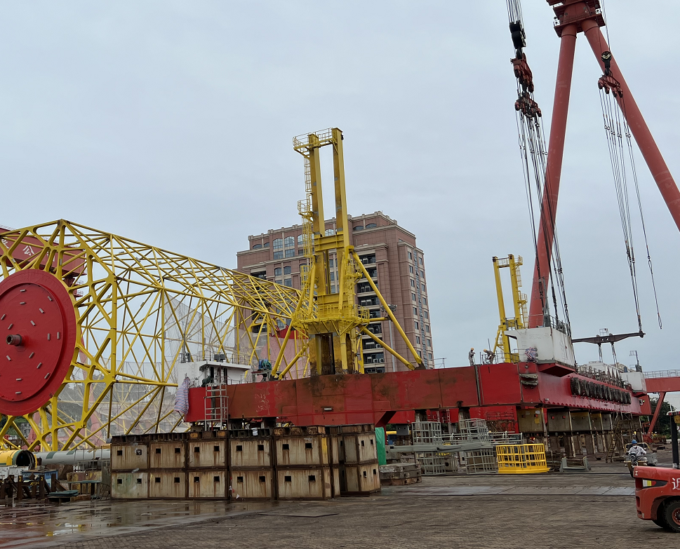 隨著提升框架的吊裝結束,海魚養殖平臺(MW909-1)浮體順利完成總拼。