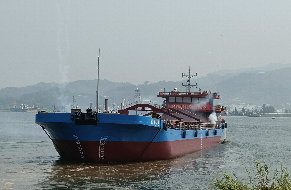 福寧重工建造的58米內(nèi)河集散兩用貨船“武夷1號(hào)”順利下水