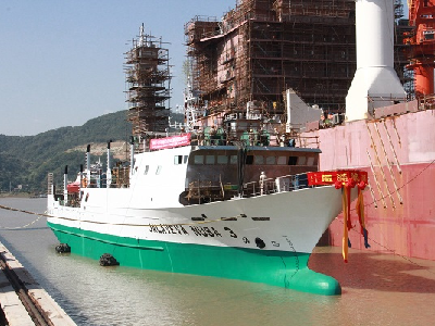 3500噸敷纜船與1700噸漁船出塢